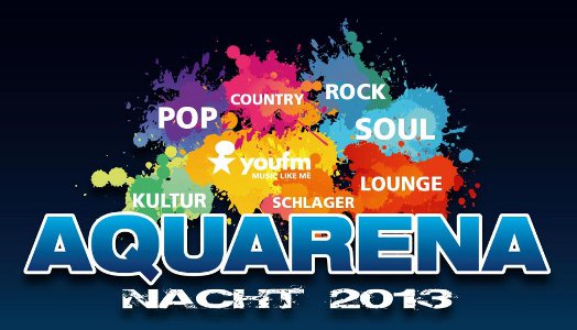 Am Samstag findet in Dillenburg die Aquarena-Nacht 2013 statt. 8 Event-Bühnen, Live-Bands, Rock- und Metal-Core-Festival, Pop-Arena, Country-Club, Sparkassen-Lounge, Schlager-Parade, Easy-Listening, kulinarische Spezialitäten und viele Überraschungen auf der Kulturmeile erwarten die Besucher ab 19.00 Uhr bis 1.00 Uhr in der Innenstadt und im Hofgarten. Ab 20.00 Uhr sorgt der HR-3 Tochtersender mit der YOU FM Party Beats und Starmoderator Rob Green für massig Stimmung und Sound auf dem Außengelände des Bades. Um 23.00 Uhr findet ein Höhenfeuerwerk statt. (Quelle: www.aquarena-nacht.de)